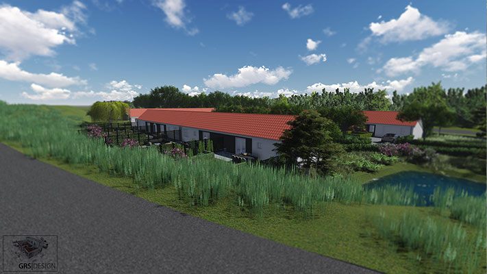 Voor een vakantie park in Tholen een plan gemaakt om een beeld te krijgen hoe de kavel gebruikt kan worden. Hierbij is het uitgangspunt een boerenhof. het ontwerp bestaat uit meerdere geschakelde woningen met eigen tuin.